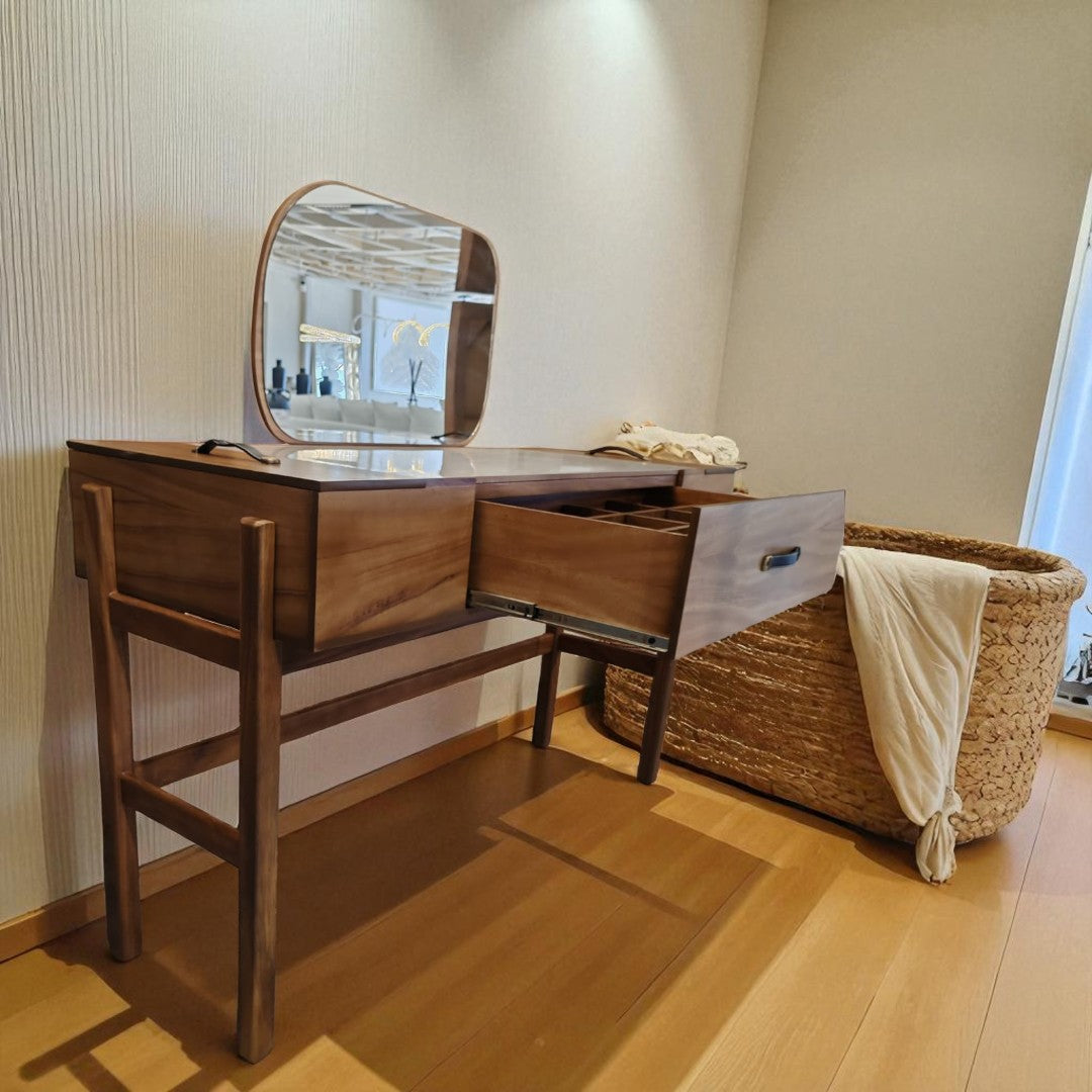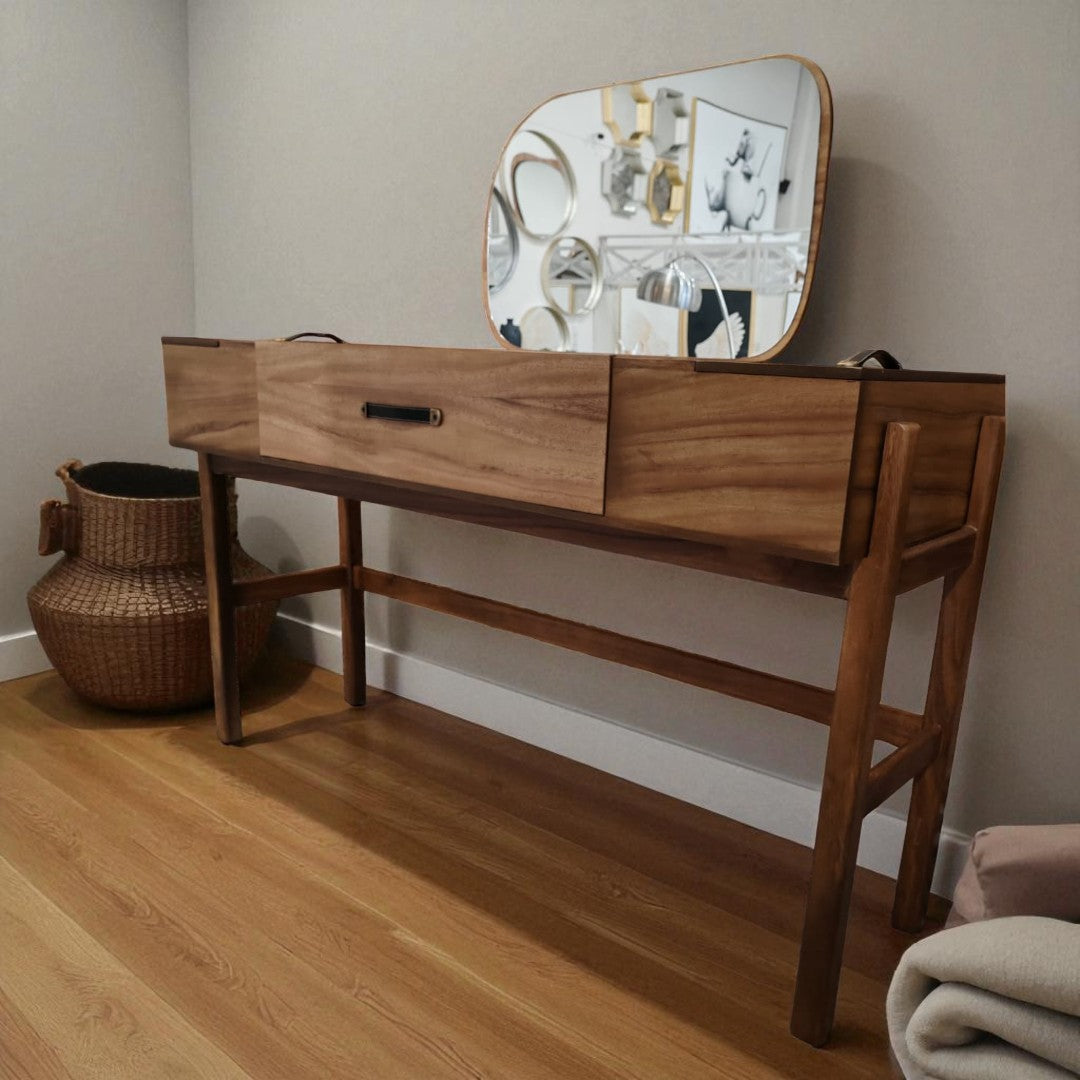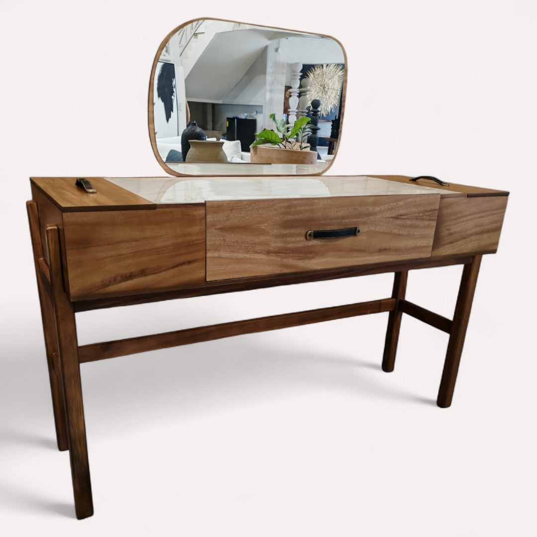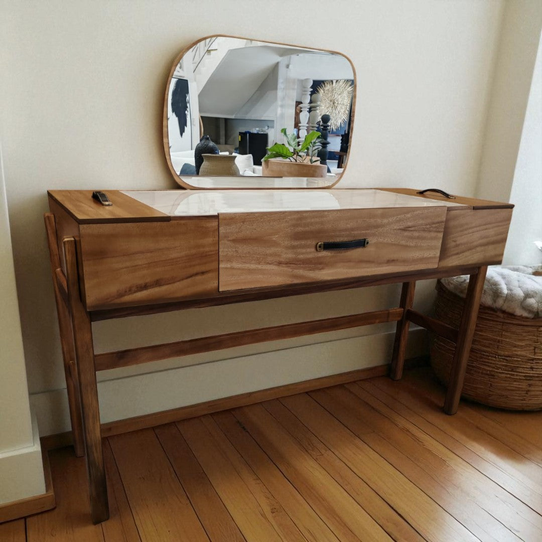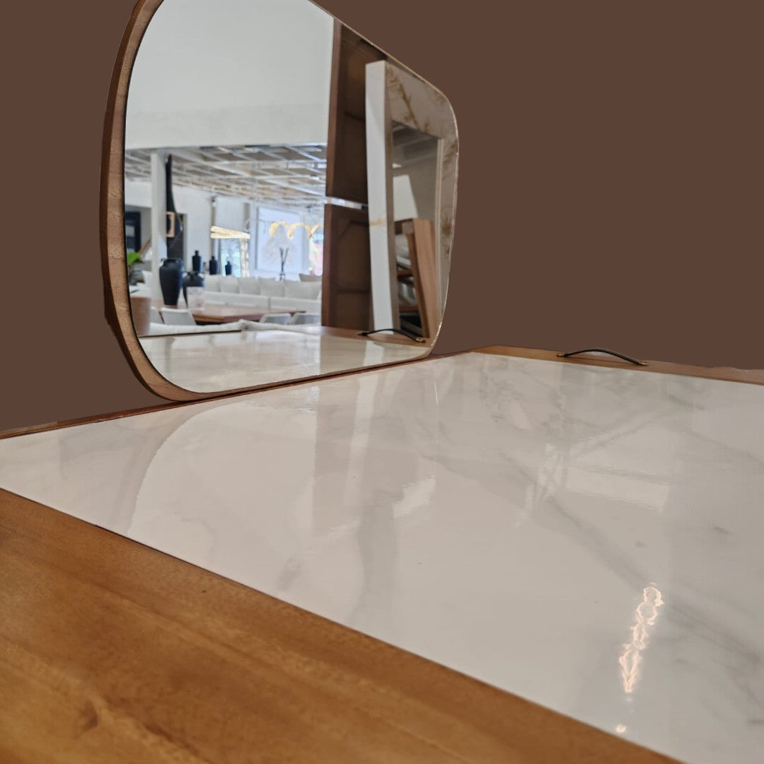 VANITY (CAJONERA Y ESPEJO) CON MADERA PAROTA, MEDIDAS: 1.40 X .53 X .85 M, ESPEJO: .75 X .45 M