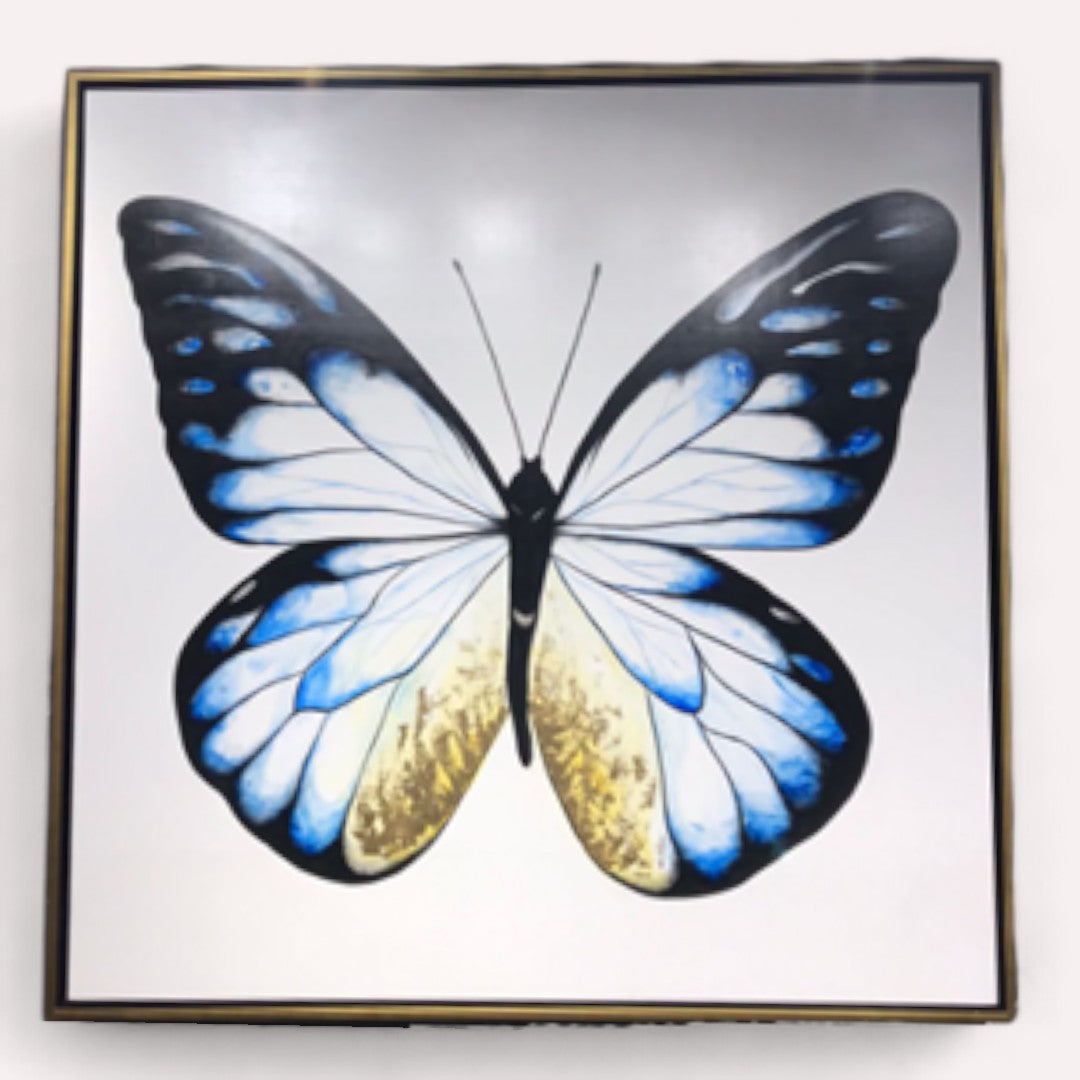 CUADRO DECORATIVO BLUE BUTTERFLY MARCO DORADO MEDIDA: 1.5 X 1.5 M