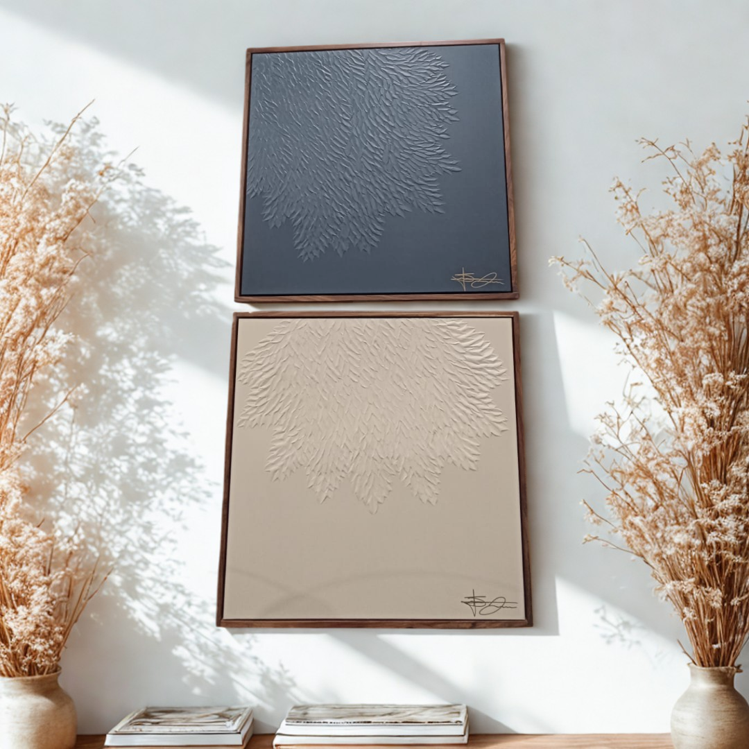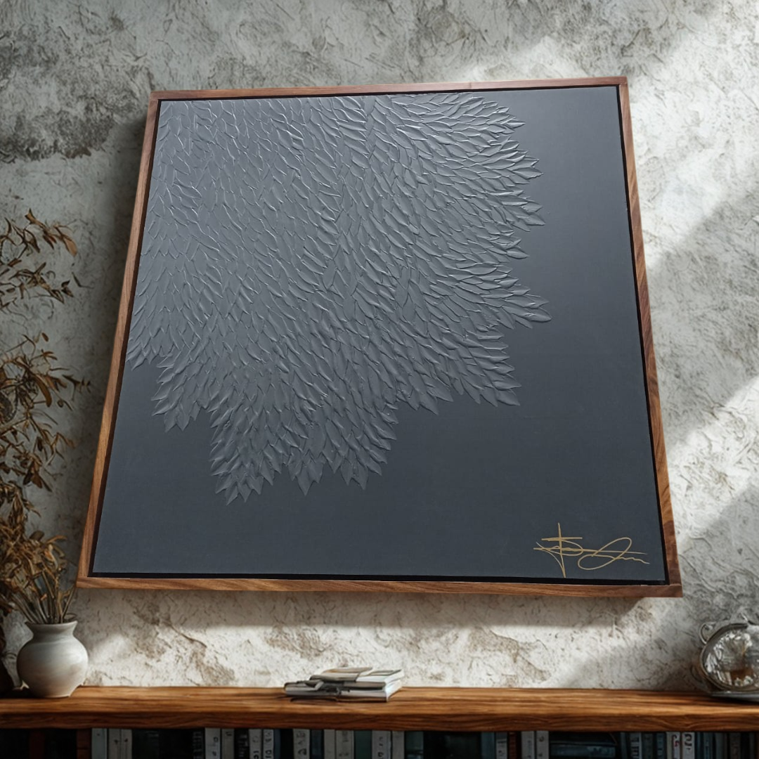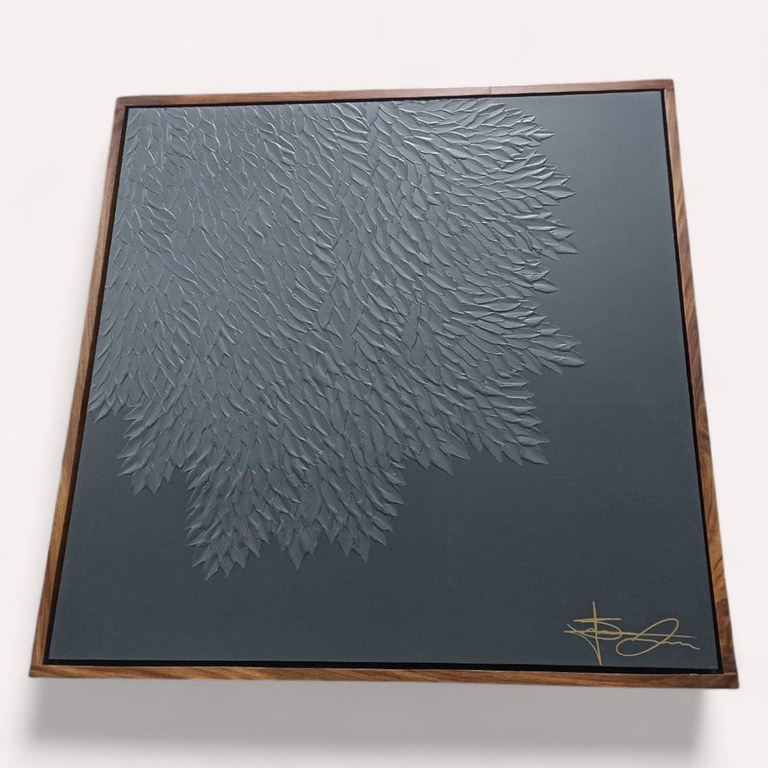 CUADRO ABSTRACTO CAIDA DE PLUMAS NEGRO MARCO PAROTA MEDIDA: 1.2 X 1.2 M