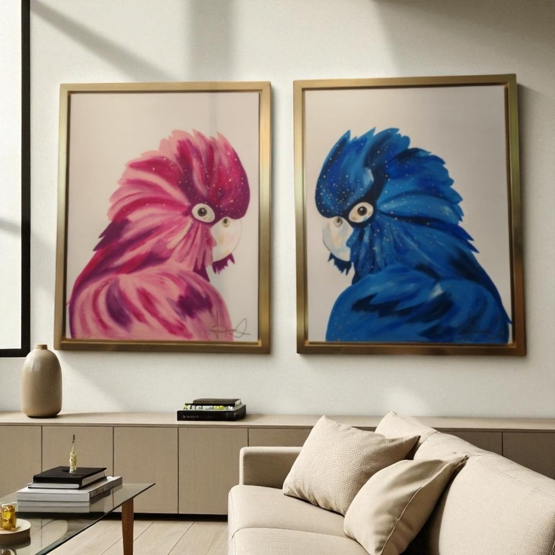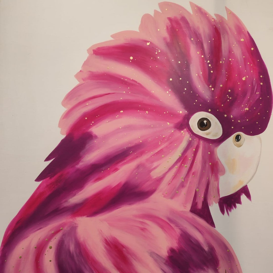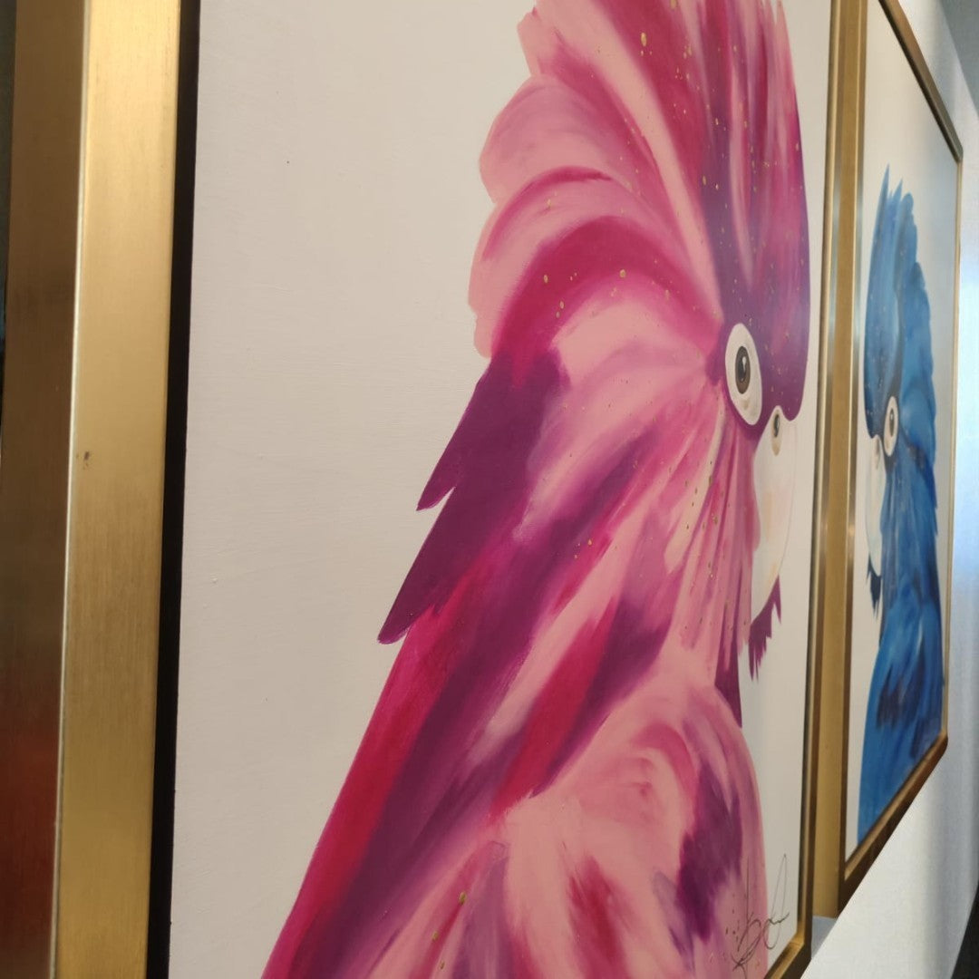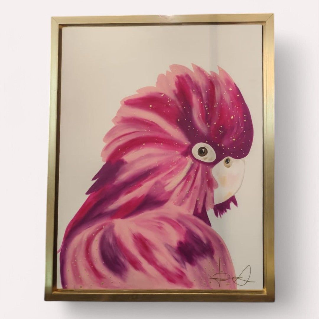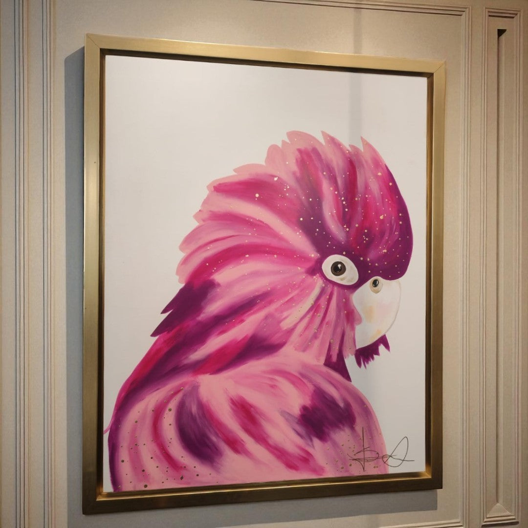CUADRO DECORATIVO GUACAMAYO ROSA MARCO DORADO MEDIDA: 1.5 X 1.2 M