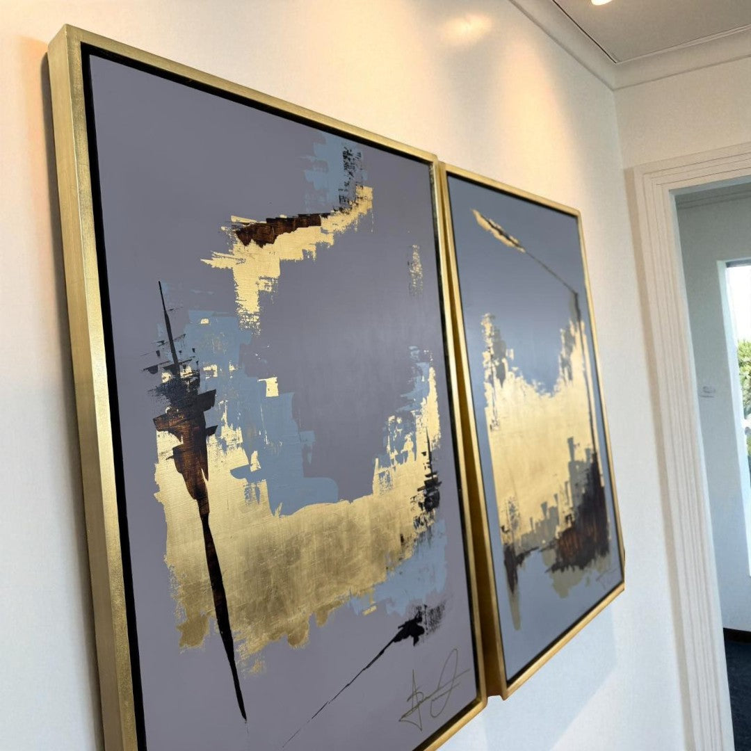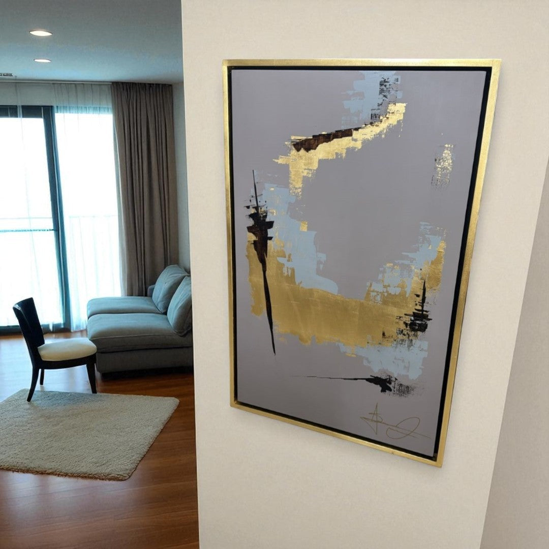 CUADRO ABSTRACTO MOKA LANDSCAPE MARCO DORADO MEDIDAS: 1.20 X .80