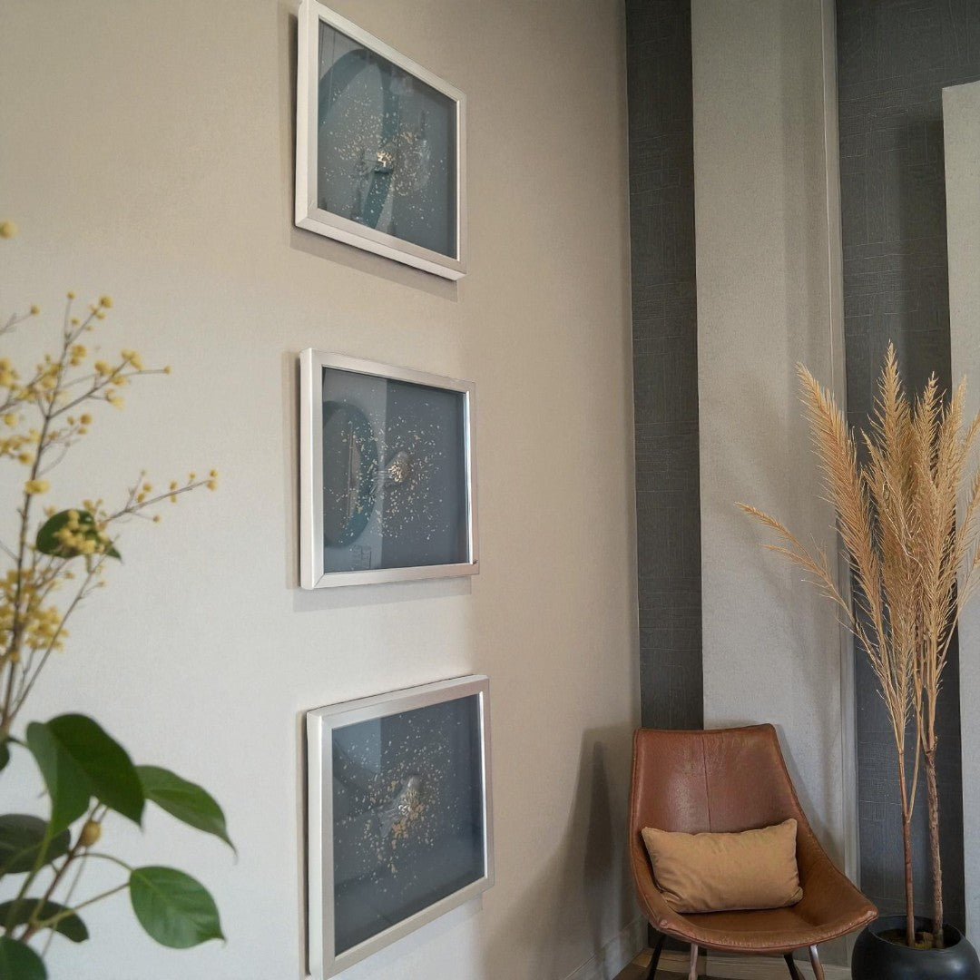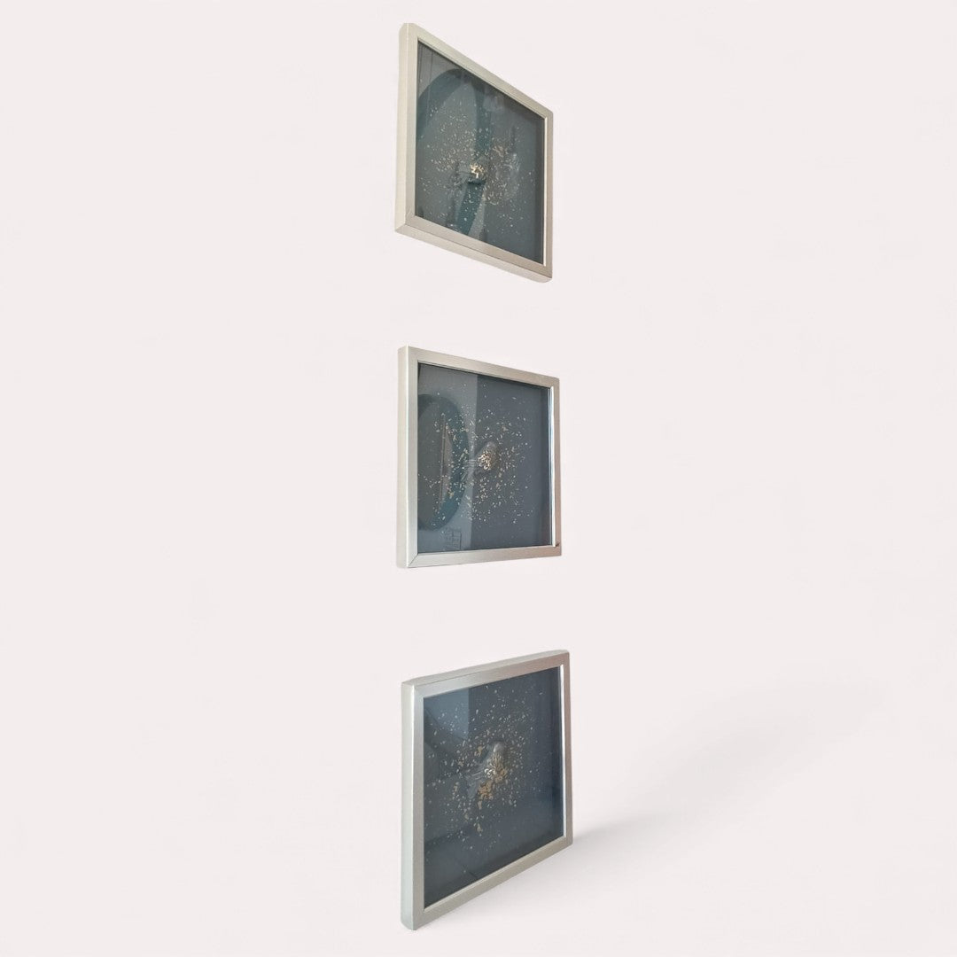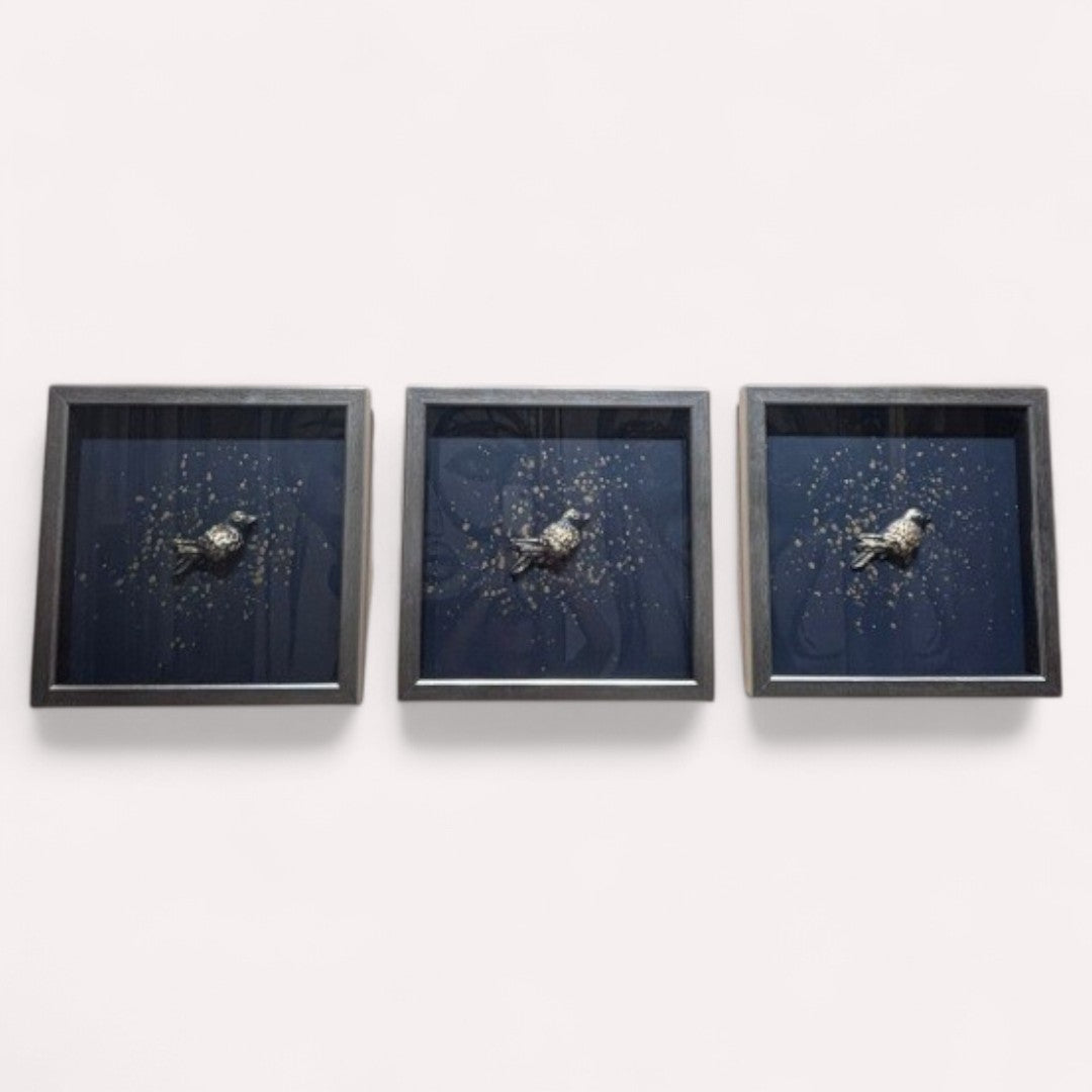 CUADRO SONATA DE AVES C GRIS AZULADO SET DE 3 MEDIDAS: .40 X .40 M