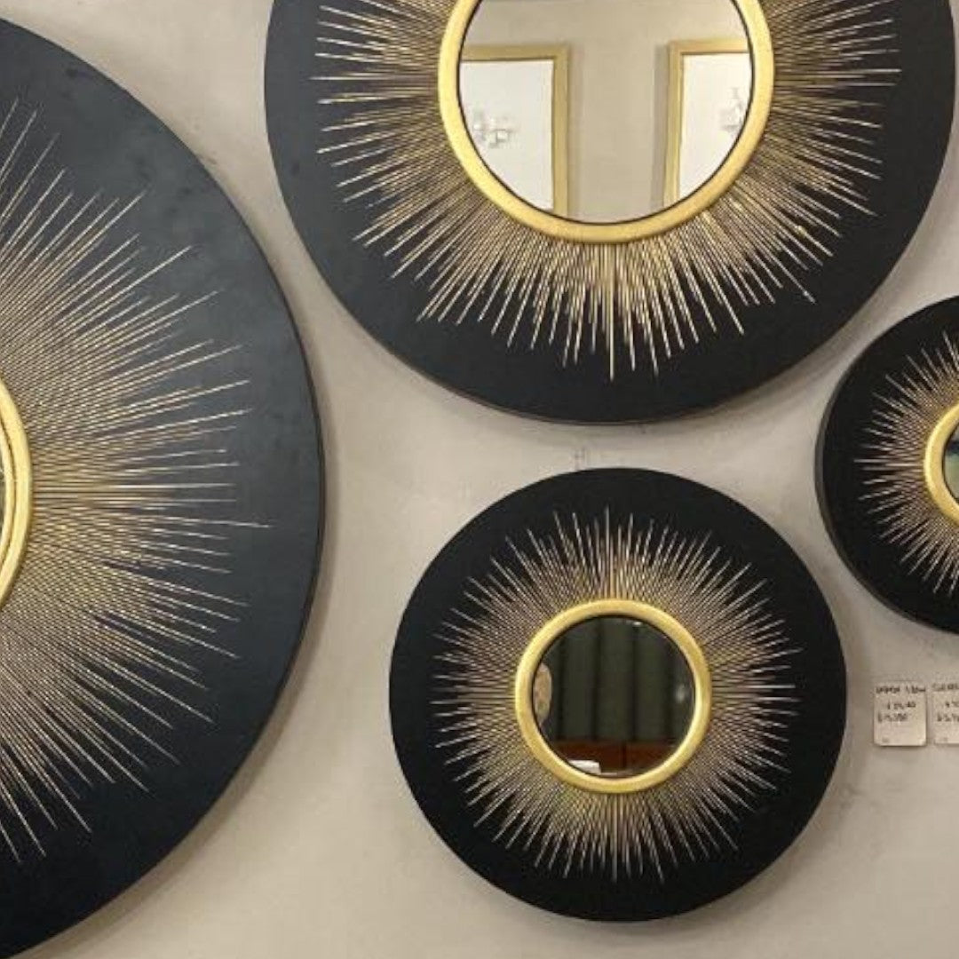 ESPEJO DECORATIVO SHINING MEDIANO MARCO NEGRO DORADO MEDIDA: .80 M