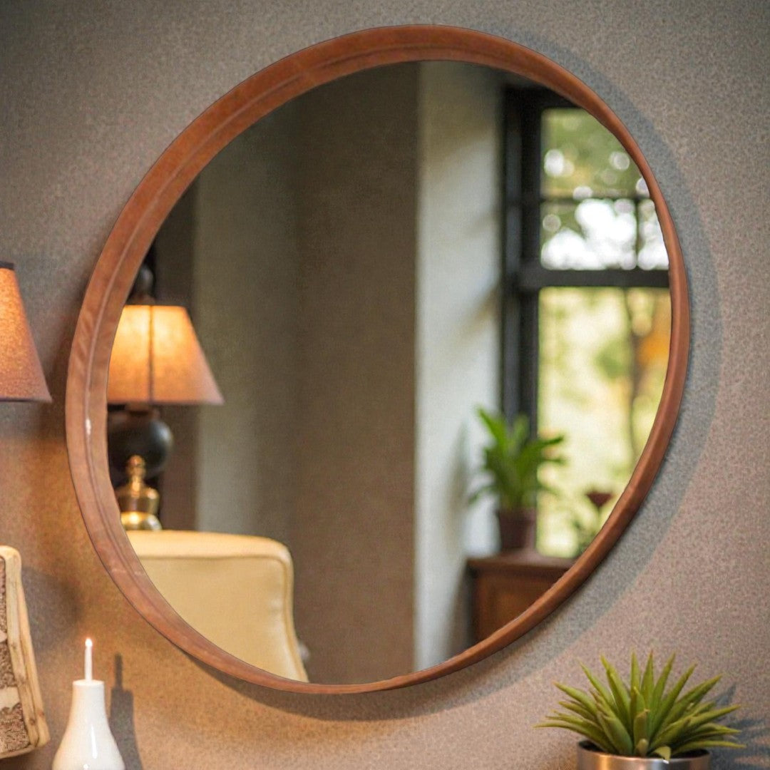ESPEJO DECORATIVO ANILLO PIEL CAMEL GRANDE MEDIDAS: 1.20M