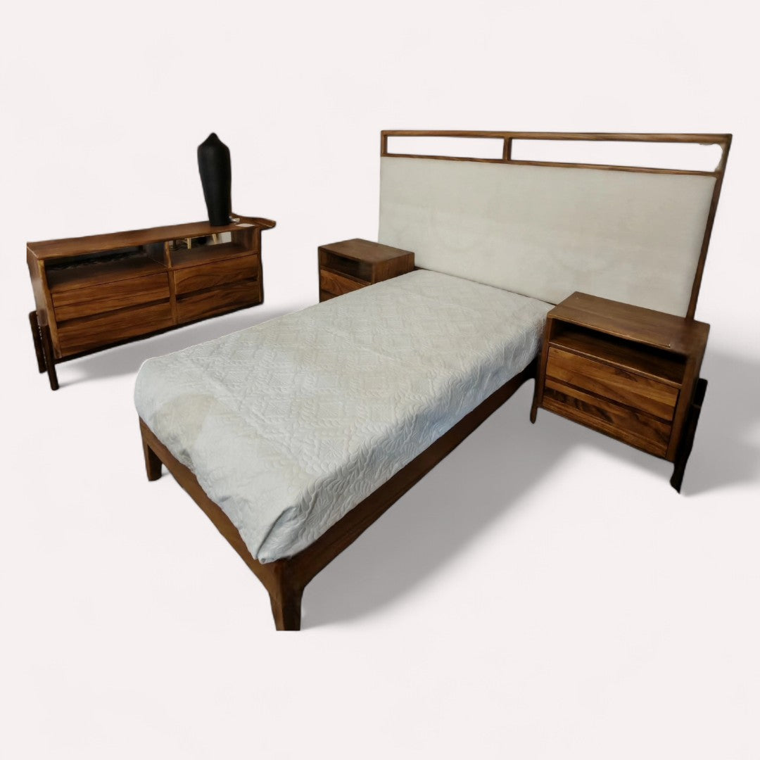 RECÁMARA MAKTUB KING SIZE 4 PIEZAS: CABECERA KS ANABELLE IVORY, CÓMODA, BURÓS (2 PIEZAS) CON MADERA PAROTA