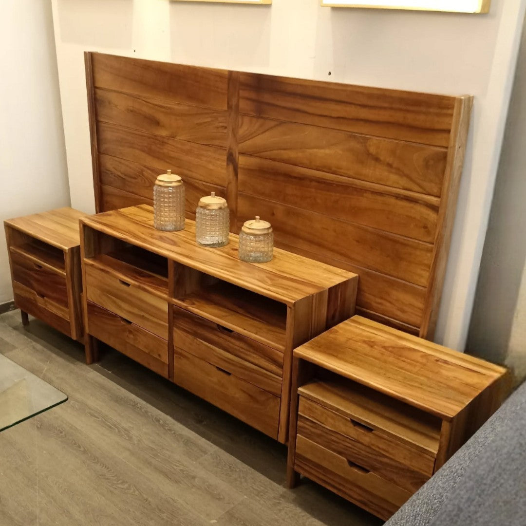 RECÁMARA TALITHA MAKTUB KING SIZE CON MADERA PAROTA 4 PIEZAS: CABECERA KING SIZE, CÓMODA,, BURÓS (2 PIEZAS)