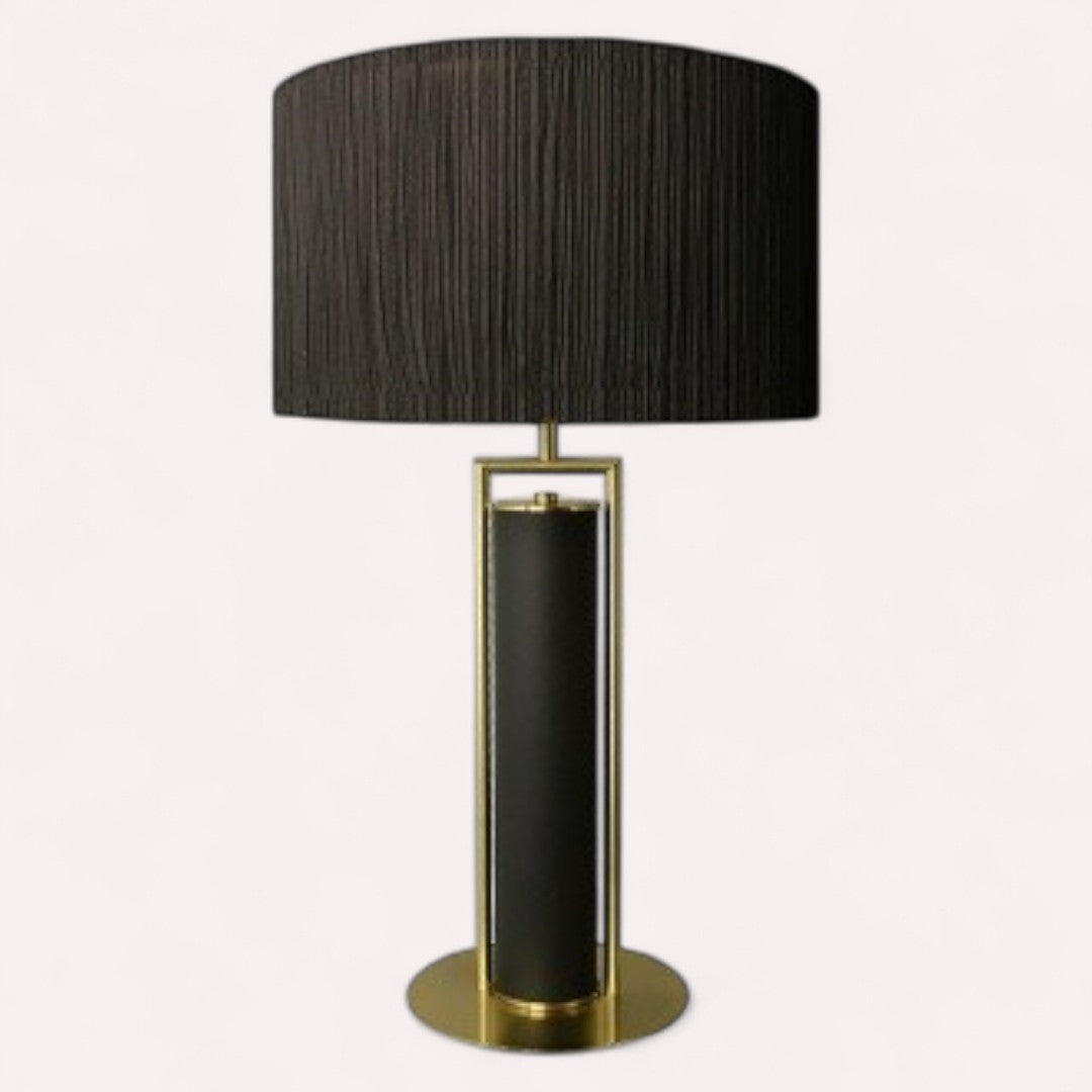 LÁMPARA DE MESA 3LMDI47 PIEL METAL PANTALLA TELA NEGRO DORADO MEDIDAS: .69 X .40 M