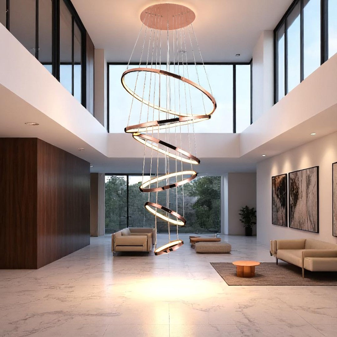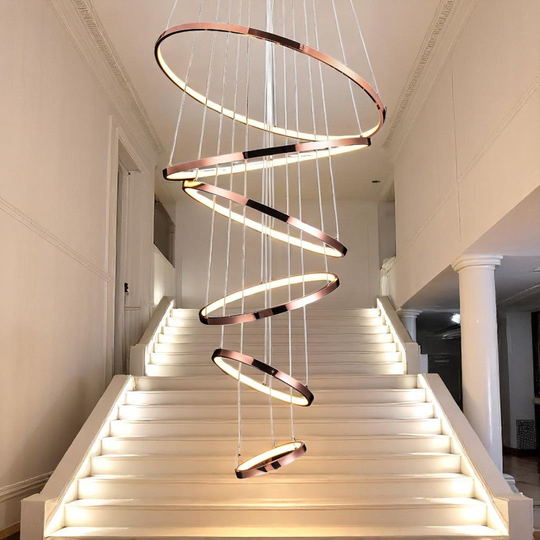 LÁMPARA 6 AROS DORADO ROSA MEDIDAS: .70 X .42 X 2M