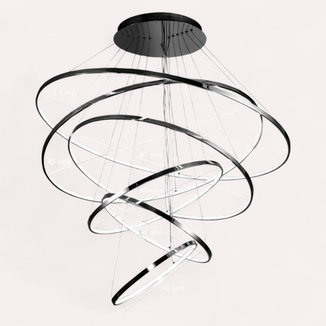 Lámpara 6 Aros Negro 1.10M