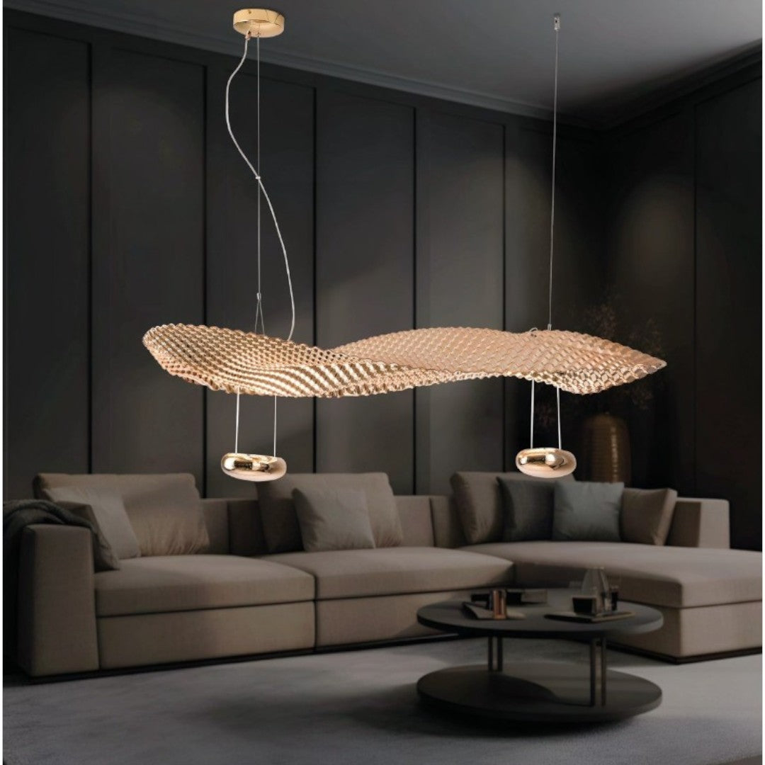 LÁMPARA DIABOLO-FG ORO ROSADO ALUMINIO ACRILICO INCLUYE CONTROL REMOTO MEDIDAS: 1.20 X .60 X .45M