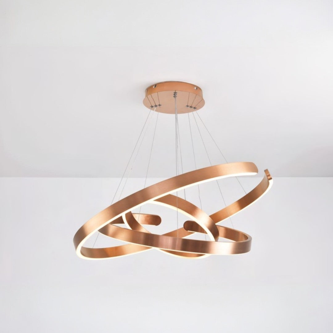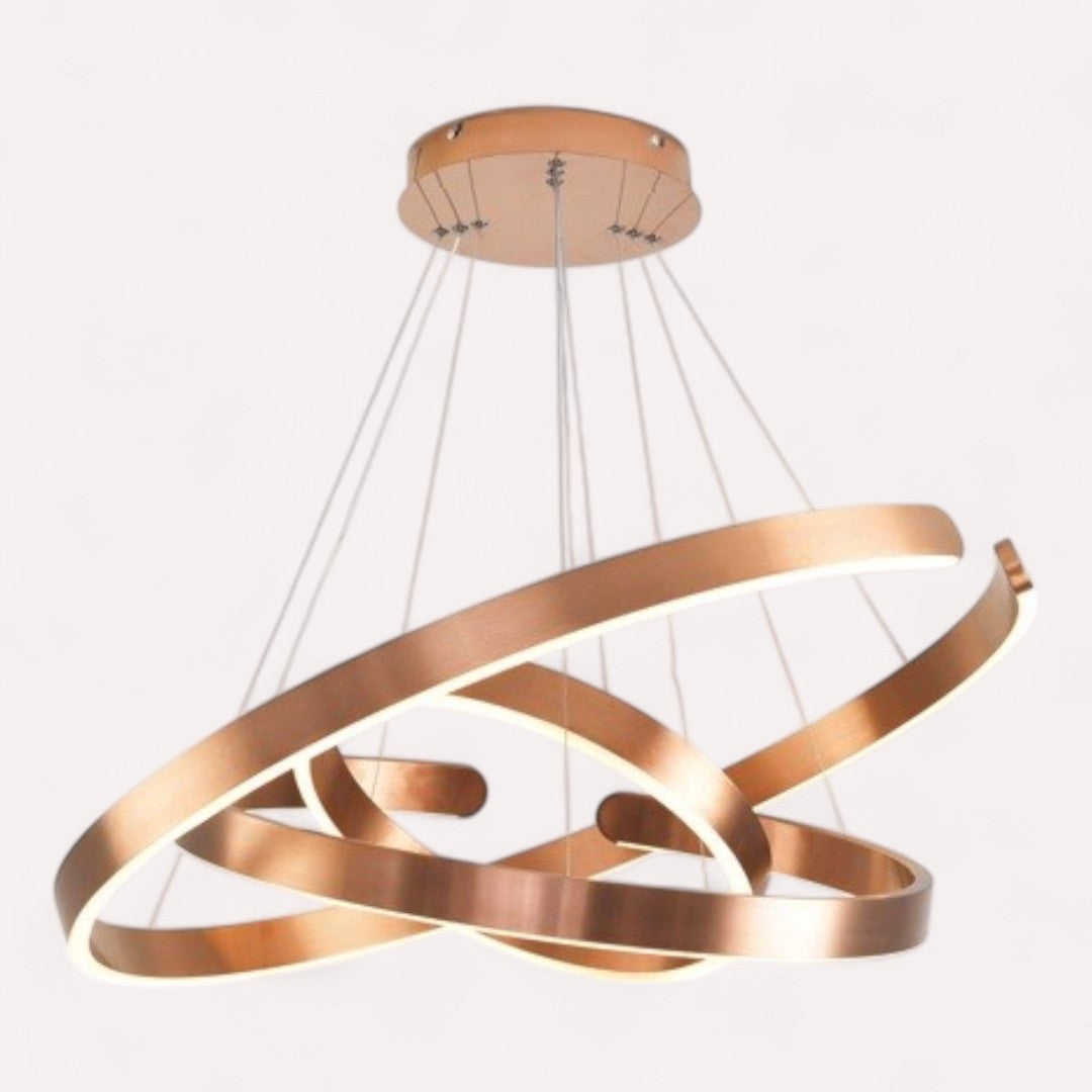 LÁMPARA VOLTA-3FG ORO ROSADO ACERO INOXIDABLE INCLUYE CONTROL REMOTO MEDIDAS: 3 X .80 X .80 MEDIDAS DE AROS: .80 X .60 X .40M