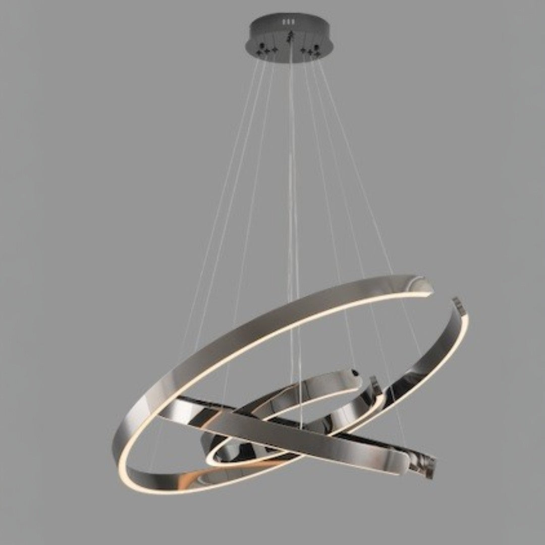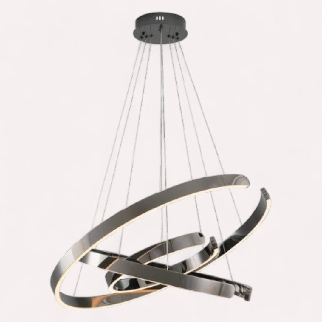 LÁMPARA VOLTA-3NP NEGRO PIANO ACERO INOXIDABLE INCLUYE CONTROL REMOTO MEDIDAS: 3 X .80 X .80M