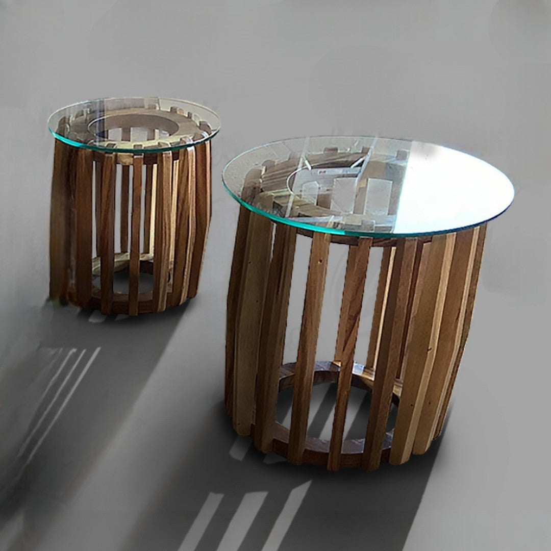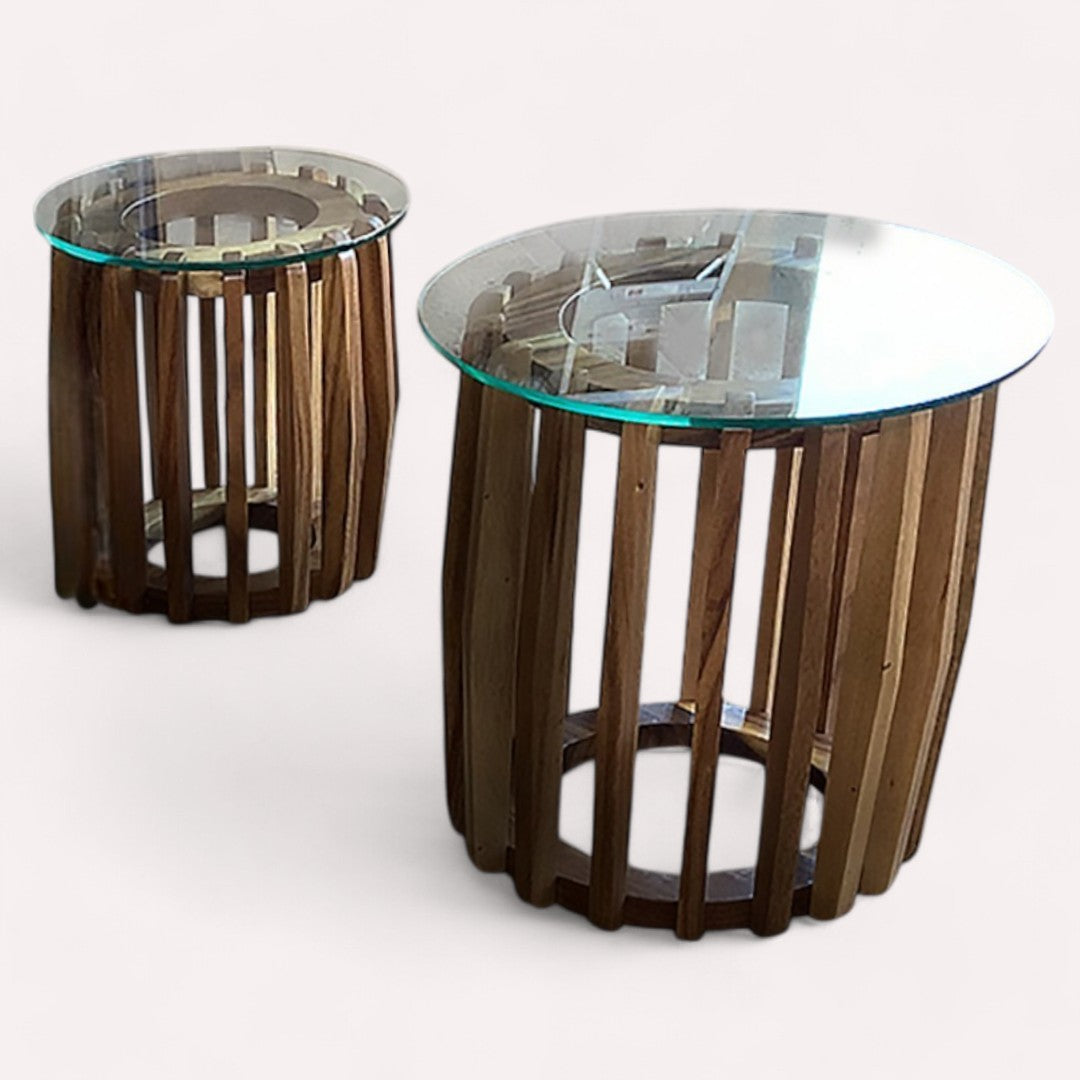 MESA LATERAL MARAYA SET DE 2 CON MADERA PAROTA CRISTAL
