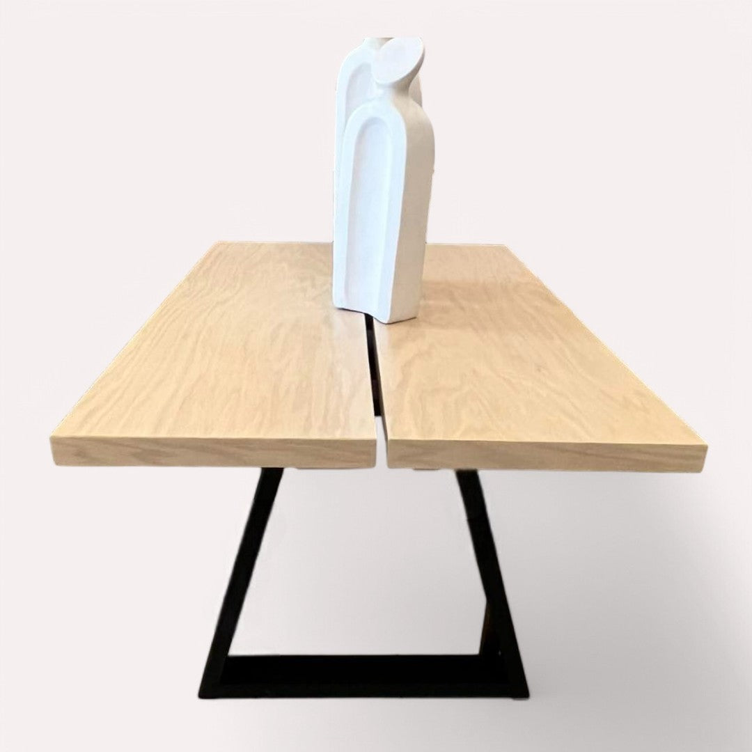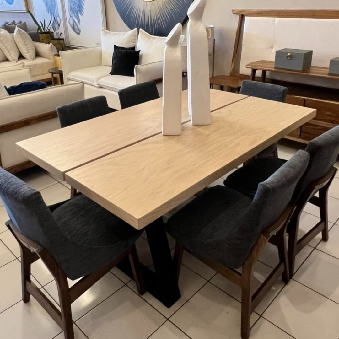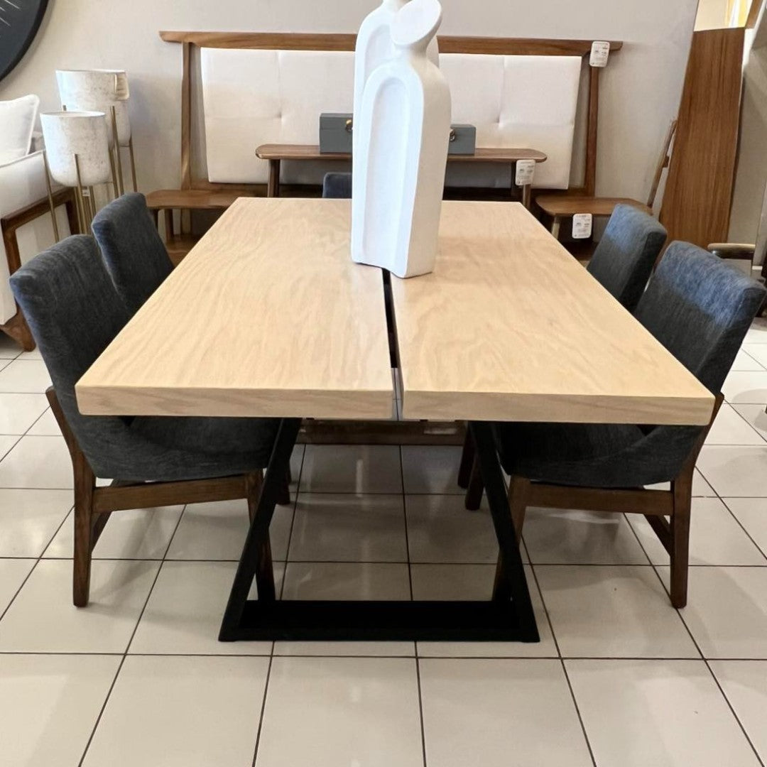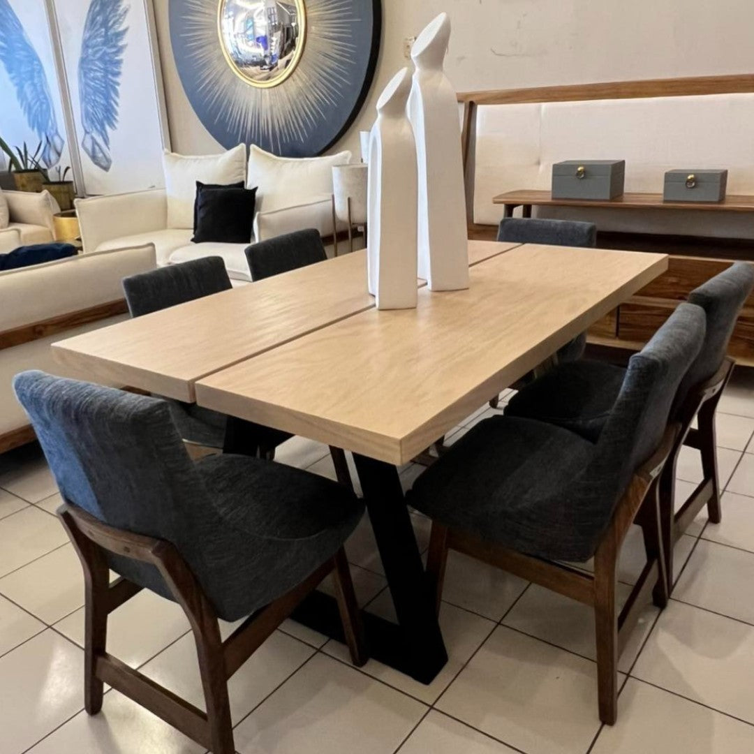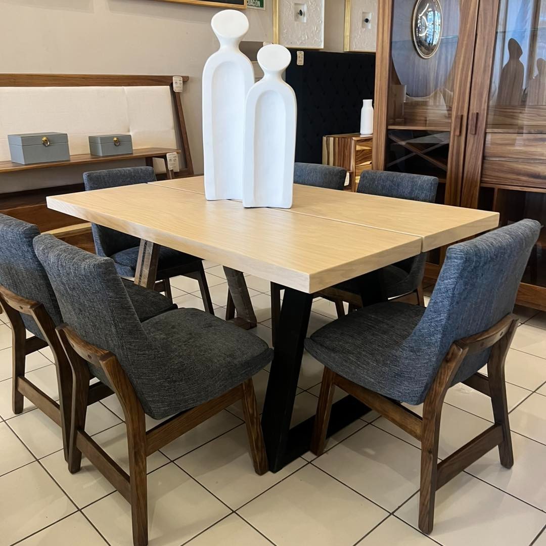 MESA DE COMEDOR DOHA 6P CHAPA ENCINO NIEVE /PEDESTAL METAL MEDIDAS: 1.60 X 1.00 M