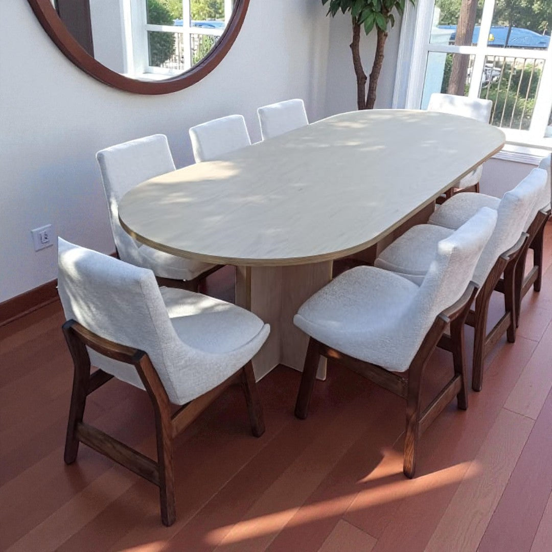 MESA DE COMEDOR GLAM 8P OVAL CHAPA ENCINO NIEVE MEDIDAS: 2.40