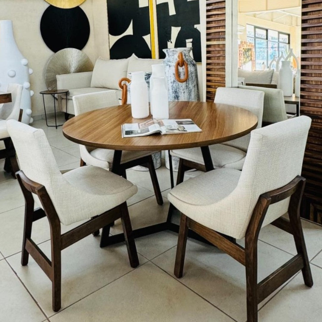 MESA DE COMEDOR VIGO REDONDA 4P CHAPA PAROTA PEDESTAL METAL MEDIDAS: 1.2 M DIAMETRO