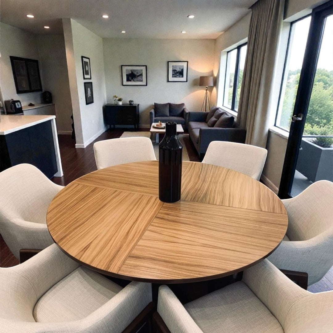 MESA DE COMEDOR VIGO REDONDA 6P CHAPA PAROTA PEDESTAL METAL MEDIDAS: 1.5 M DIAMETRO