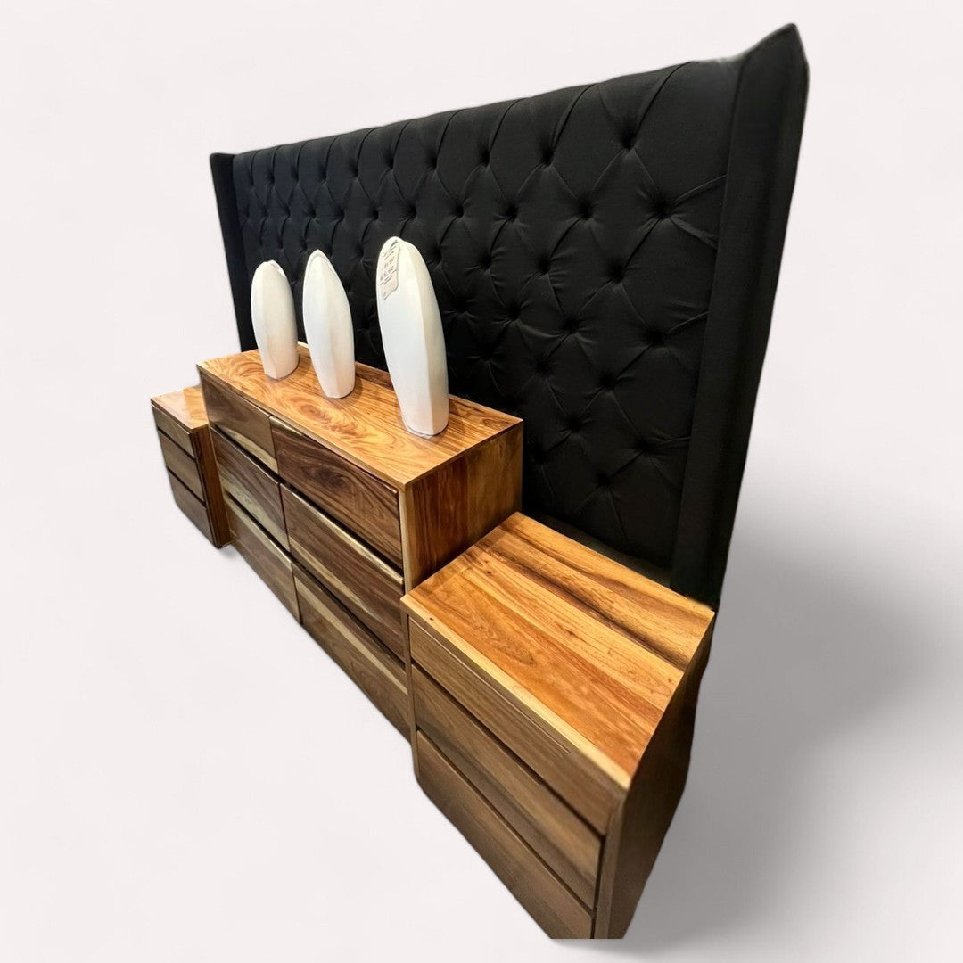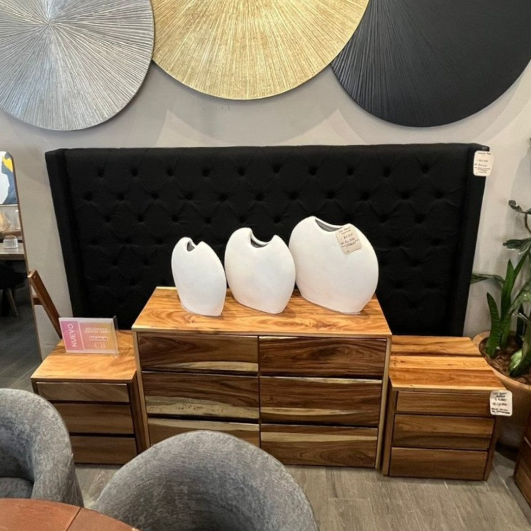 RECAMARA ABBY ANTO 4 PZAS, PAROTA TELA, CABECERA KING SIZE, COMODA, 2 BUROS