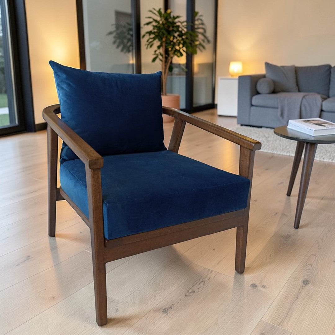 SILLÓN OCASIONAL PEKA , ROSA MORADA, T/AZUL MARINO , TONO NOGAL AMERICANO