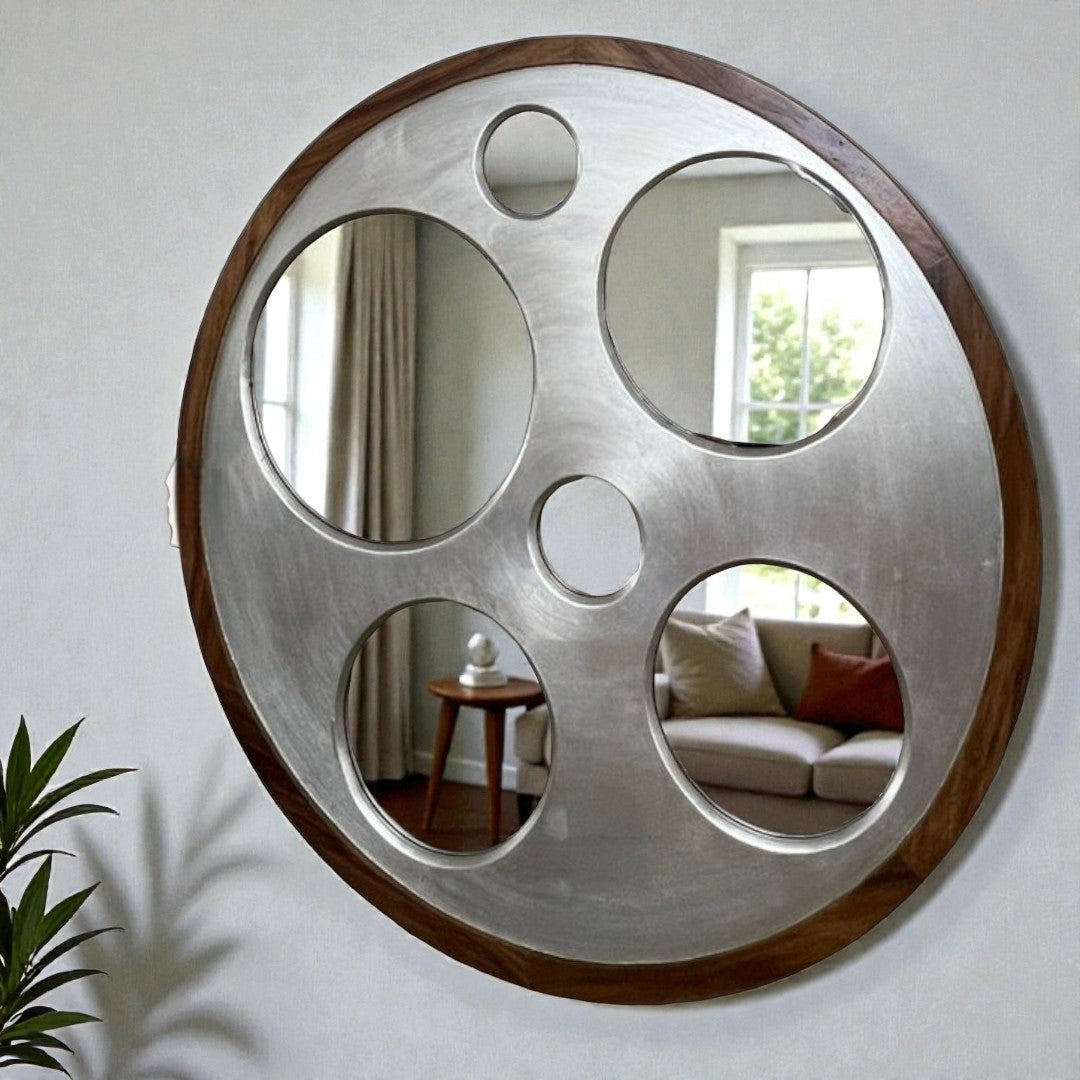 ESPEJO DECORATIVO ENGRANES APLICACIÓN PLATA MEDIANO MARCO PAROTA MEDIDA: 1.2 M
